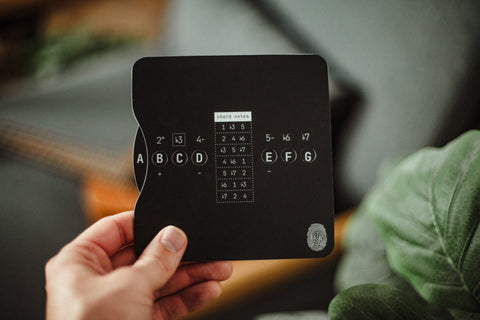 No more rolling your eyes back or counting on your fingers like you’re doing math in public. Just spin — and boom, every chord you need is right there.